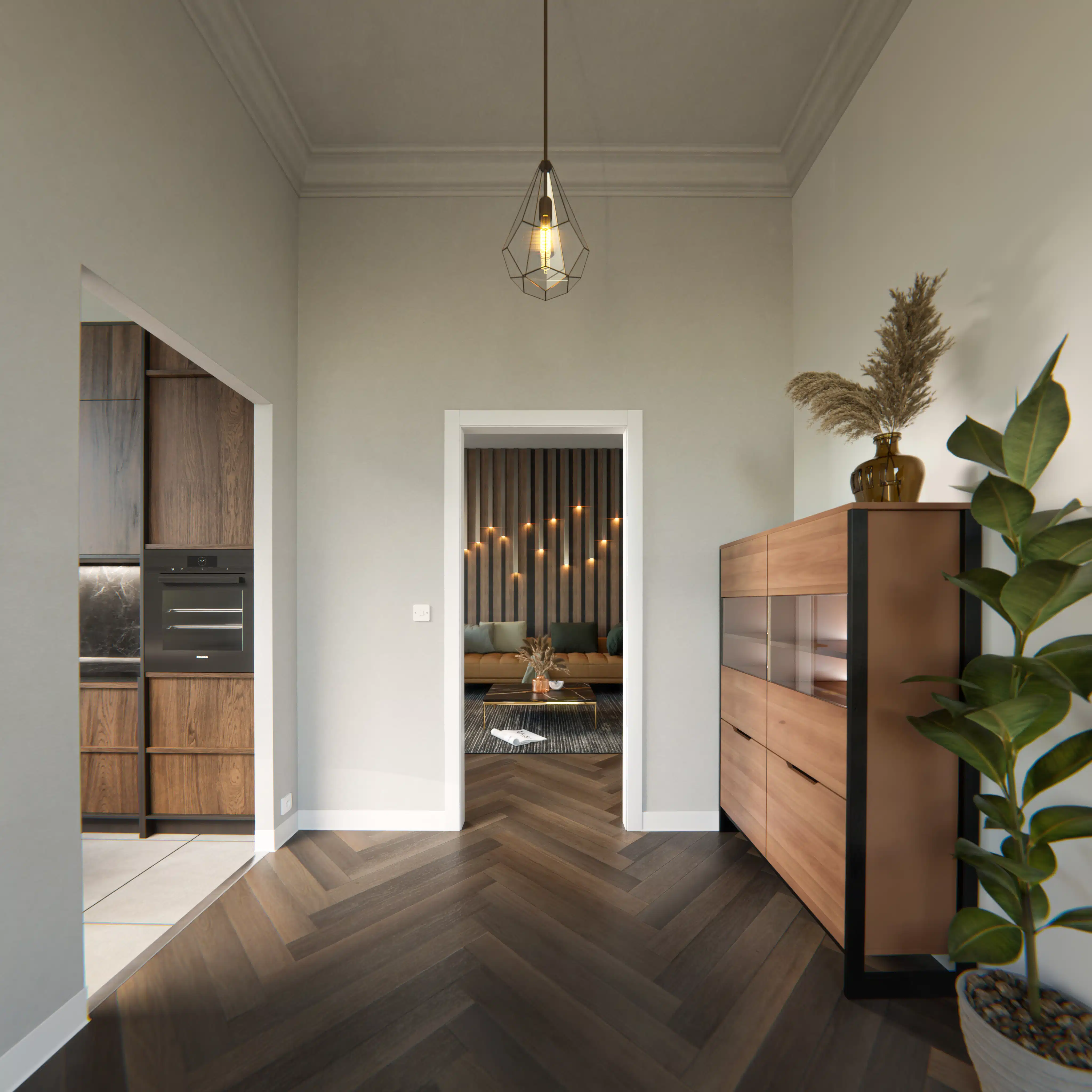 Pour un effet discret et harmonieux, on vous conseille de peindre l’encadrement de porte de la même couleur que les murs. Partez de préférence sur une couleur claire pour matcher avec un style sobre, épuré et pas trop chargé.