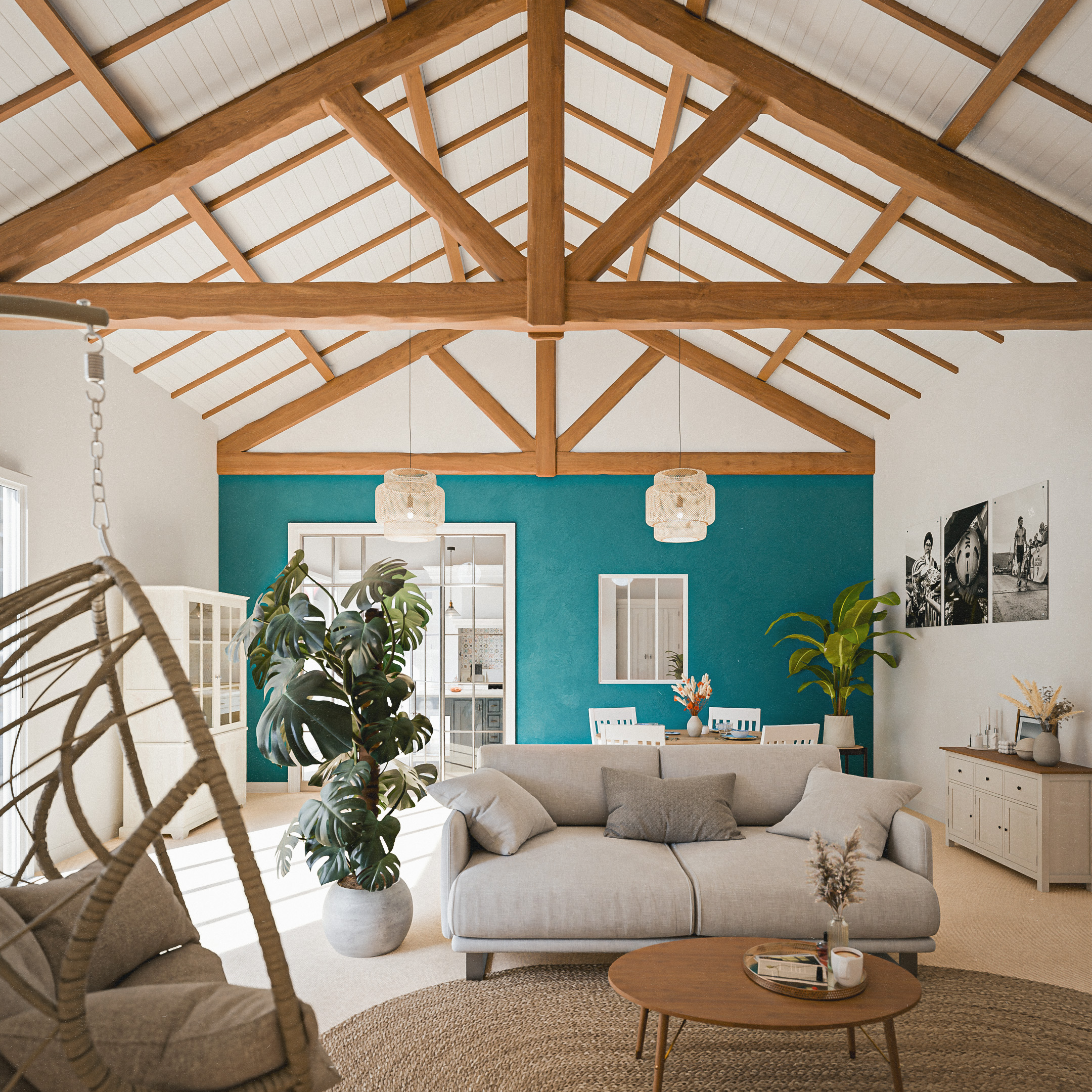 Une verrière peut être un atout majeur pour renforcer l’esprit bord de mer. Elle permet de laisser entrer un maximum de lumière naturelle, créant une impression d’ouverture sur l’extérieur, comme si vous étiez face à l’océan. Une verrière blanche ou noire s’intègre parfaitement à l’esthétique bord de mer et donne une sensation d’espace et de légèreté.