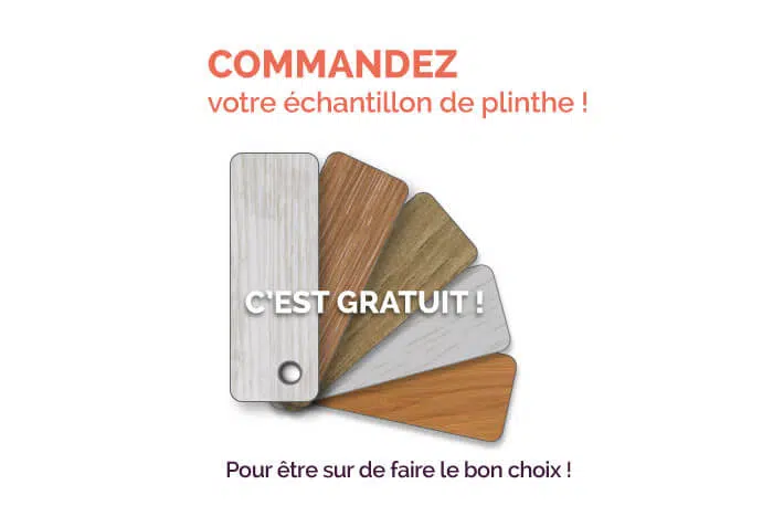 Vous n’êtes pas tout à fait sûr quant au choix du décor de votre plinthe ? Demandez alors votre échantillon plinthe gratuit ! Nous proposons l’envoi d’échantillon plinthe* pour toutes nos offres de plinthes ! Ainsi, vous pouvez être sûr de faire le bon choix et juger de la qualité de nos produits ! L’envoi d’échantillon est valable en France Métropolitaine**.