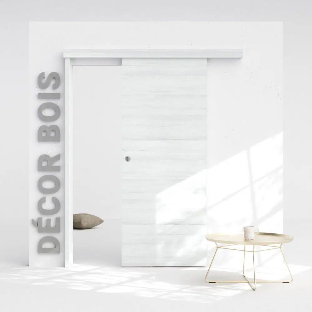 La porte coulissante Helsinki invite à la décontraction et à la légèreté. Son décor bois polaire est typique du style scandinave, minimaliste et épuré. Elle est idéale pour délimiter des espaces tout en gagnant de la place. Avec le système de rail coulissant, notre porte coulissante Helsinki permet d’optimiser les volumes et d’offrir jusqu’à 1 m² de surface au sol supplémentaire.