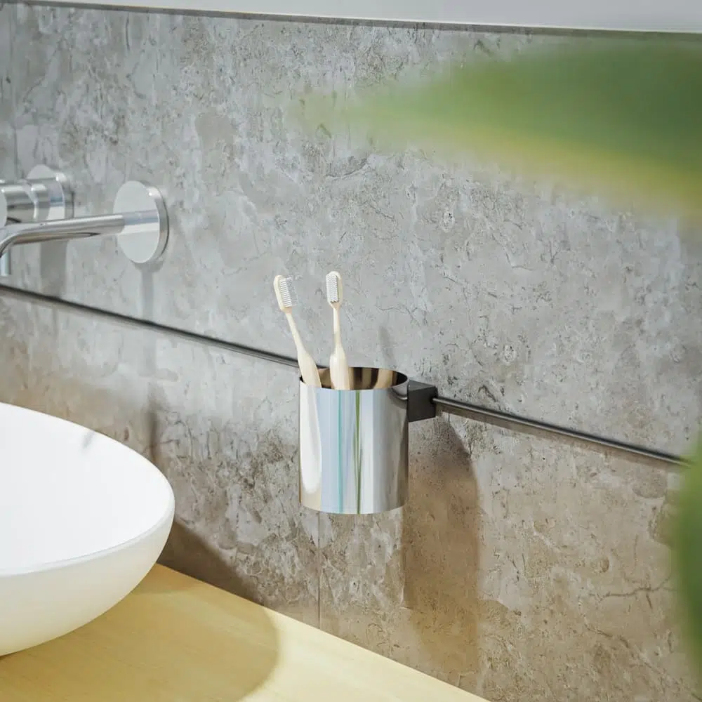 L’accessoire incontournable dans votre salle de bain ! Notre gobelet en inox vous permettra de disposer vos brosses à dents pour toujours les avoir prêtes et facilement accessibles. Sa matière le rend résistant à la corrosion et se fond parfaitement dans tous les styles de salle de bain. L’installation ne vous prendra que quelques minutes. Il vous suffira de glisser et de visser le gobelet en inox sur notre profilé pour pouvoir en profiter au quotidien. Personnalisez votre salle de bain avec notre gobelet en inox !