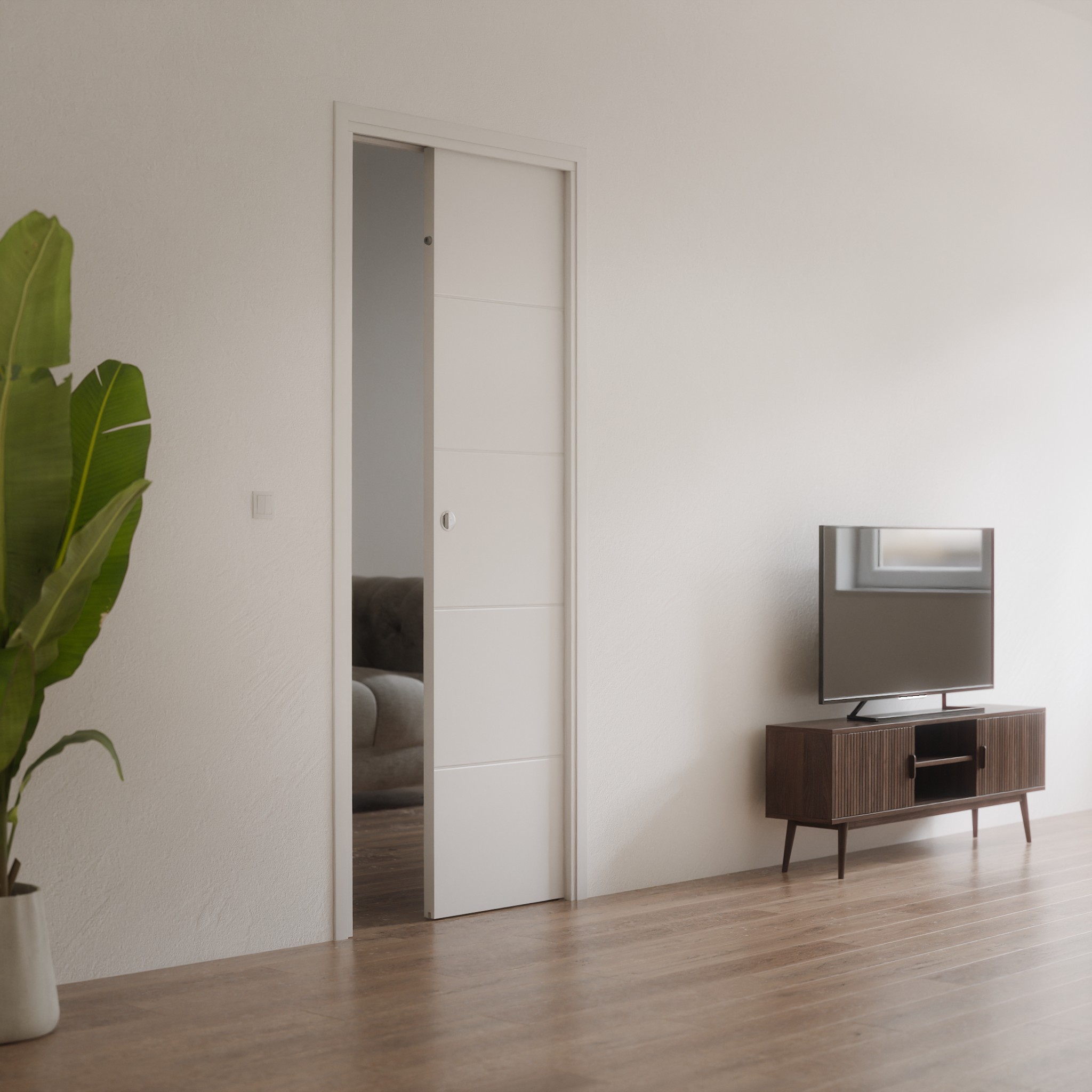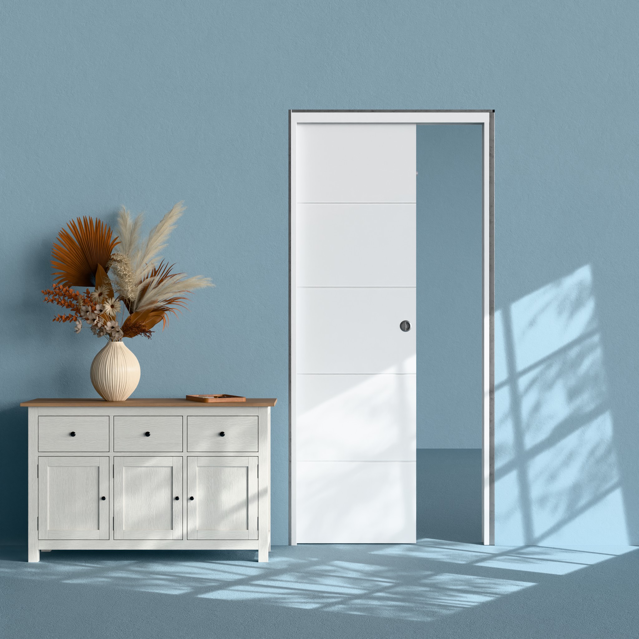 La porte coulissante Ligne 93 cm de la marque Coulicool offre une touche de modernité à votre intérieur. Dotée de 4 lignes horizontales, la porte Ligne est prépeinte, elle peut être peinte en blanc ou d’une toute autre couleur.