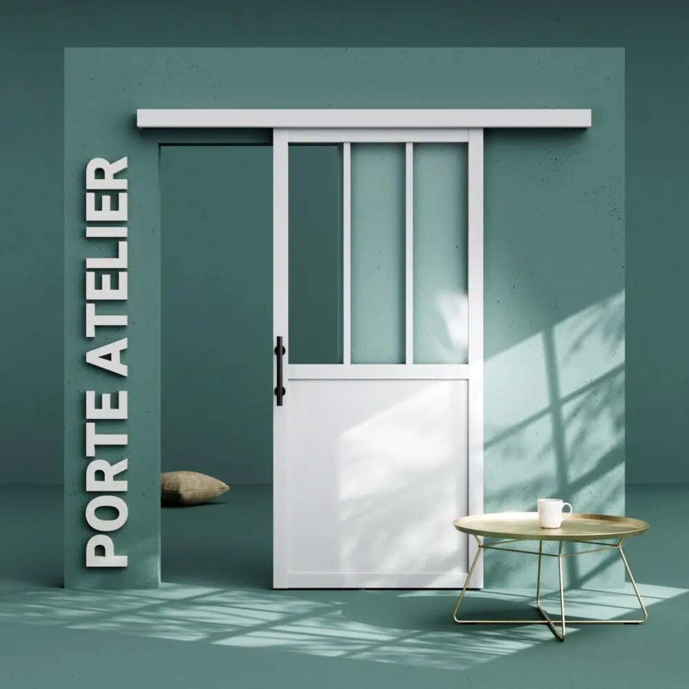 Avec son système coulissant ingénieux, notre porte atelier coulissante peut offrir jusqu’à 1 m² de surface au sol supplémentaire. Ce modèle est idéal pour créer des séparations sans fermer complètement les espaces. La vitre de la porte laisse passer les rayons du soleil et permet de faire le lien entre les différentes pièces.