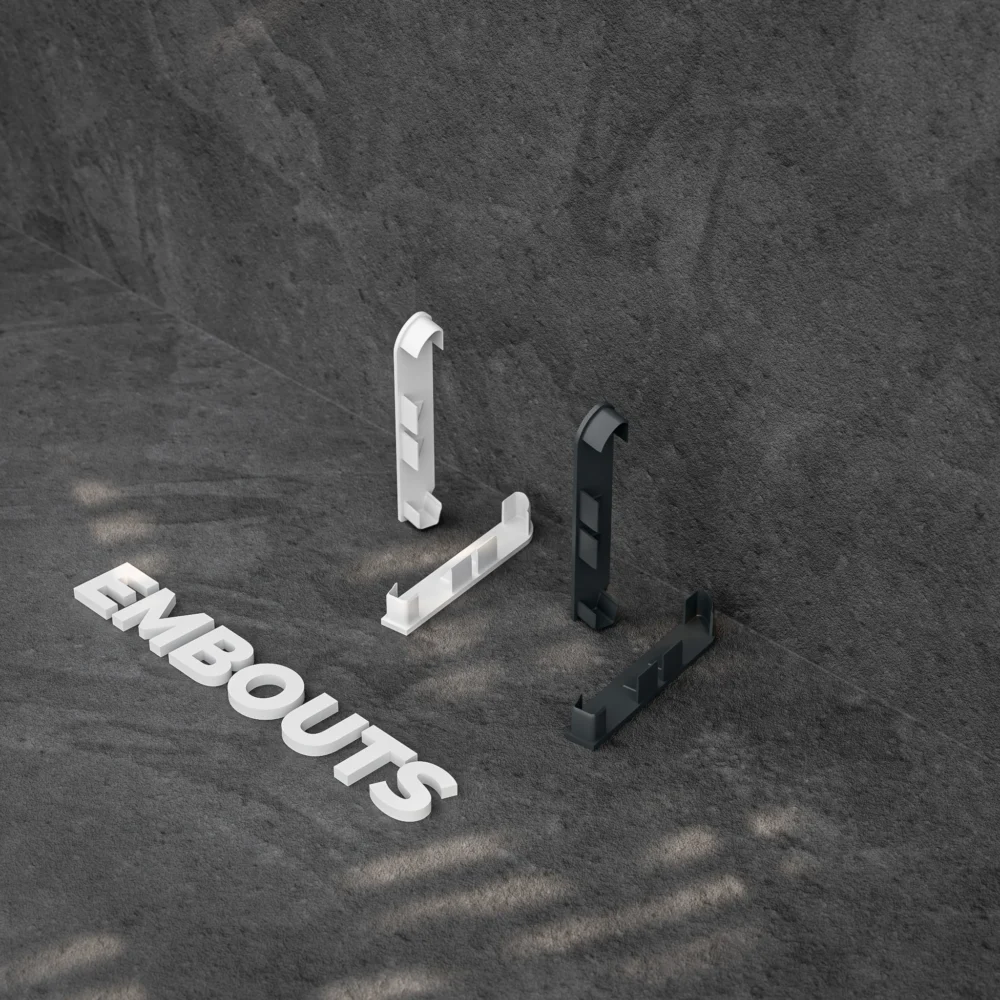 Paire d’embouts compatible avec les plinthes alvéolaires PVC. Ces embouts apportent une jolie finition aux extrémités des plinthes.