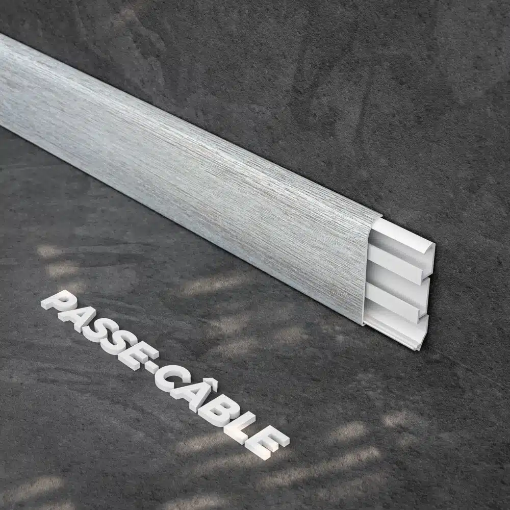 Le décor chêne revisité proposé pour cette plinthe apportera un aspect cocooning et beaucoup de douceur à la pièce ! En somme, une plinthe passe-câbles qui s’accordera parfaitement avec le décor sans le surcharger.