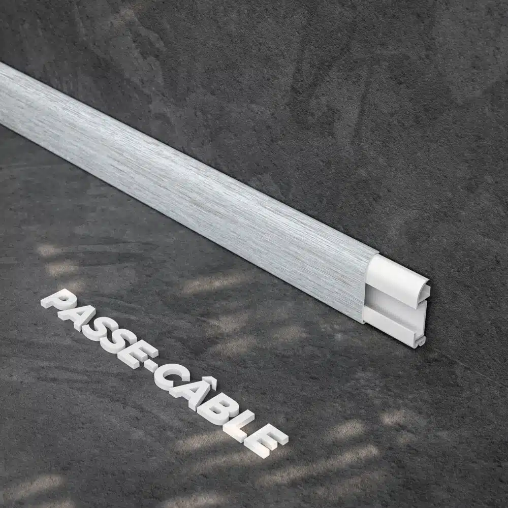 Notre solution est bien moins chère, bien plus simple et rapide. Nos plinthe passe-câbles 50 mm chêne cendré dissimulera vos câbles basses tensions parfaitement et son installation sera simple et rapide. En plus d’être pratique nos plinthes passe-câbles, disponibles en plusieurs décors, s’intégreront discrètement dans votre maison.