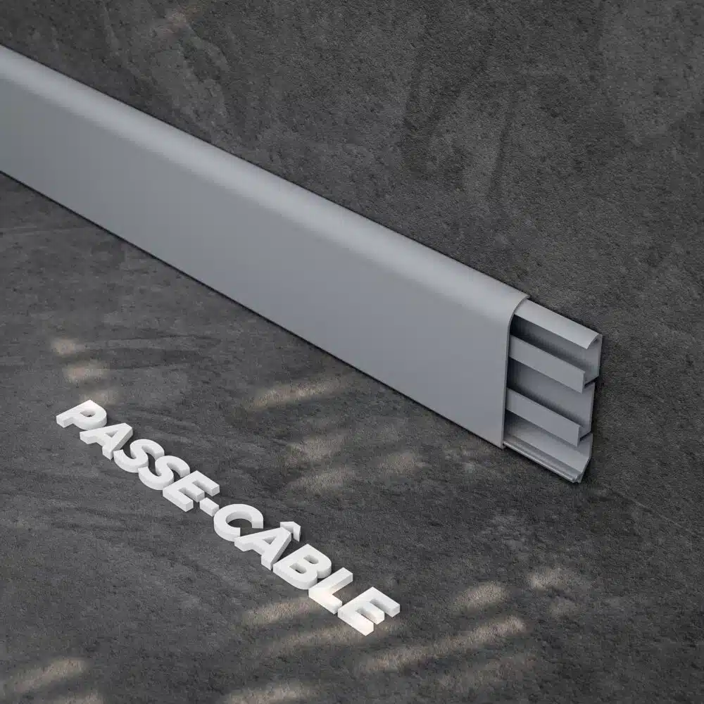 Or, si vous optez pour notre plinthe passe-câble grise, aucuns travaux ne seront à prévoir ! Les atouts supplémentaires : une mise en oeuvre aussi rapide que facile et un coût peu élevé.