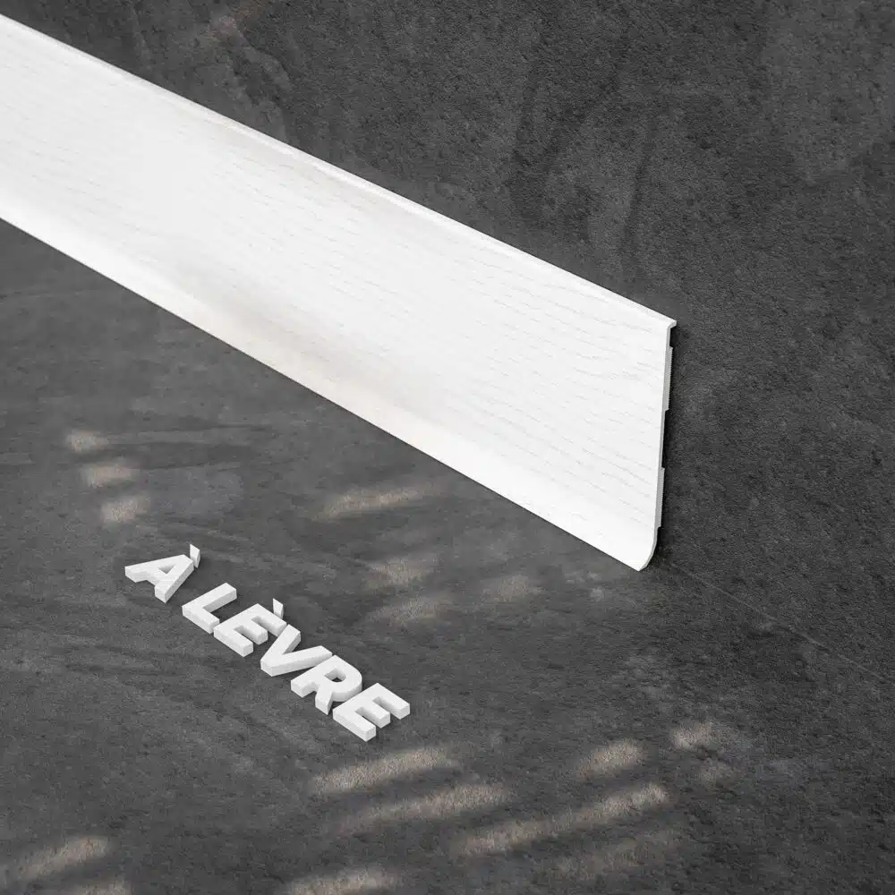 Que ce soit pour l’aménagement ou de la rénovation, la plinthe à lèvre PVC décor frêne blanc convient pour un usage intérieur uniquement. En PVC rigide, la plinthe à lèvre résiste aux poussières et à l’eau, elle peut se poser sans aucun problème dans les pièces humides : cuisines et salles de bain.