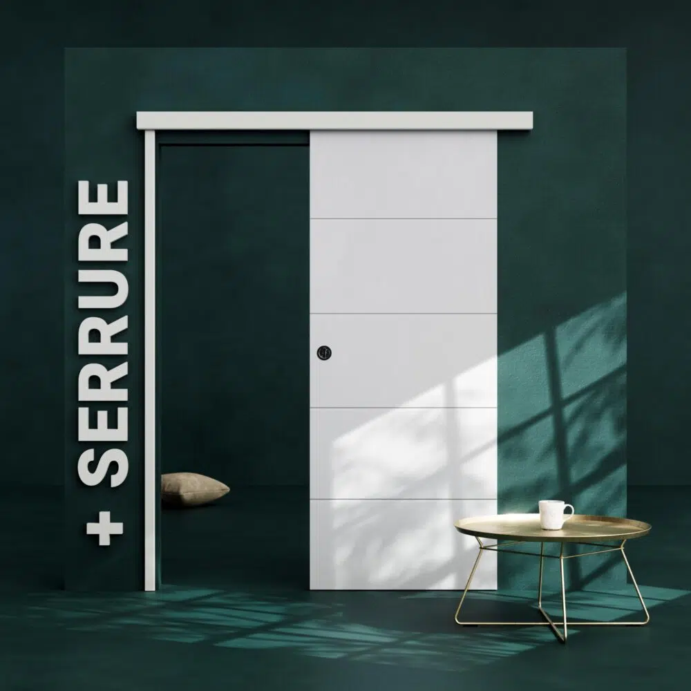 La porte coulissante avec serrure Ligne 83 cm apporte élégance et charme à votre intérieur. Existante en plusieurs dimensions, elle convient à toutes les pièces qui ont besoin de bénéficier de calme, d’intimité et de sécurité telle qu’une chambre, une salle de bain ou des toilettes.