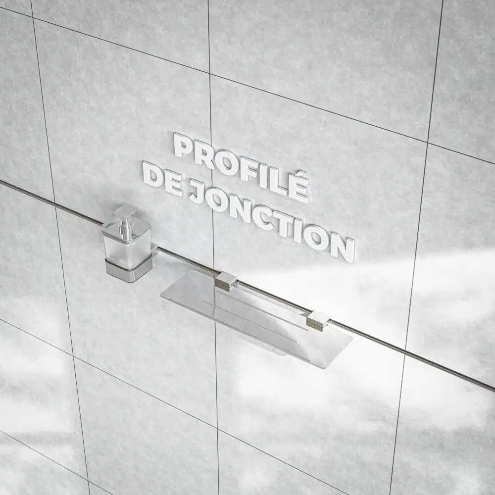 Faites de votre salle de bain un endroit reposant et moderne avec notre série contemporain pack PLUS ! Pendant la pose de votre carrelage, posez notre profilé de jonction. Ce dernier se pose entre deux carreaux de carrelage pour une finition discrète et esthétique. Notre profilé permettra aussi d’accrocher les accessoires présents dans le pack + contemporain. Le premier accessoire est le distributeur de savon en verre dépoli. Ce dernier au design épuré permettra de vous laver les mains ou de mettre votre shampoing sans difficulté. Une tablette rectangulaire est comprise dans le pack pour que vous puissiez mettre les produits de cosmétiques que vous utilisez le plus fréquemment. Notre système permet de fixer facilement les accessoires sur le profilé. Si vous voulez les changer de place, en rajouter ou même en enlever, c’est possible, car les accessoires se posent et se retirent à l’infini.