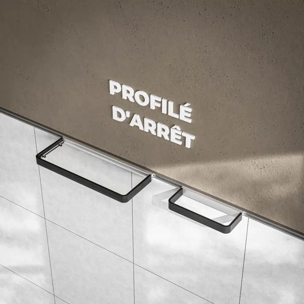 Profitez d’une salle de bain équipé par vos soins avec notre série industriel pack PLUS ! Avec le profilé d’arrêt, vous pourrez marquer la fin de votre carrelage et laisser votre mur prendre le relais pour donner un style à vos parois. Le profilé d’arrêt est disponible en trois coloris pour s’adapter au mieux au style de votre salle de bain. Notre série industriel pack PLUS est livré avec deux accessoires pour votre salle de bain. Disposez vos savons, shampoings ou autres produits sur la tablette en verre discrète et moderne. Pour vos serviettes, nous vous proposons le petit porte-serviette. Pratique, il permettra à vos serviettes de sécher, mais aussi de toujours l’avoir en sortant de la douche. Le profilé permettra de poser et d’enlever les accessoires comme bon vous semble ! Pour ce faire, glissez puis resserrez les accessoires sur le profilé et le tour est joué.