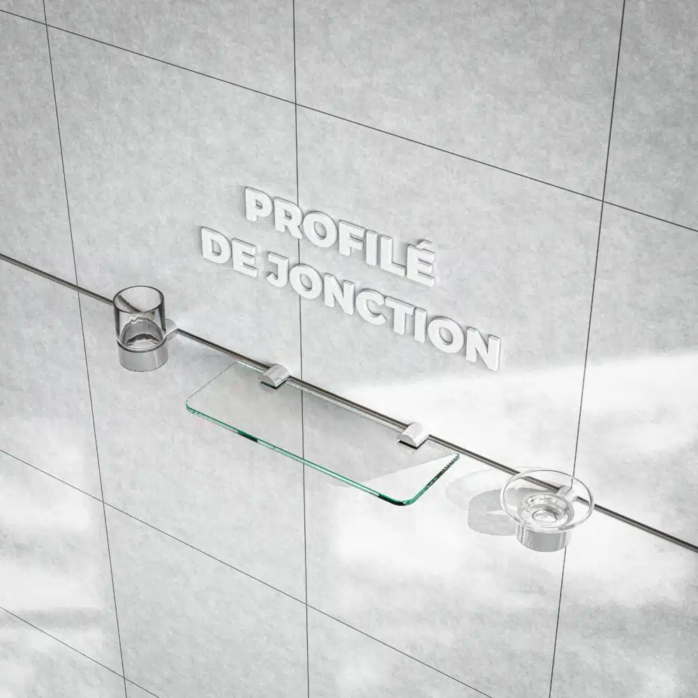 Redonnez à votre salle de bain un nouveau souffle. Adoptez le style minimaliste avec notre série minimaliste pack PLUS. Pour commencer, notre profilé de jonction viendra finir votre carrelage. Ce dernier s’installe lors de la pose entre deux carreaux et permettra de visser les accessoires. Composez de trois accessoires indispensables pour votre salle de bain, notre pack vous permettra d’aménager votre salle de bain comme vous l’avez toujours souhaité. Le gobelet en verre, le porte savon rond et la tablette pour douche en verre dépoli sont aussi disponibles dans le pack. Ils vous faciliteront le quotidien et apporteront une harmonie à votre pièce. Pour les installer, rien de plus simple, il vous suffit de les glisser et de les visser sur le profilé. Faites-en de même pour les enlever, dévissez-les puis changez-les de place à l’infini.
